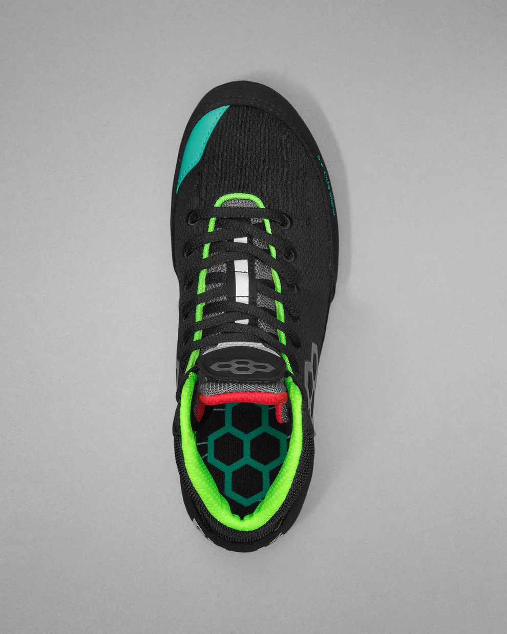 - Clinul pentru limbă are un design ergonomic și îngust, care previne înghesuirea, în timp ce clinul intern flexibil menține limba aliniată în poziția corectă. Sistemul de fixare a șireturilor RUDIS acoperă orice capete libere care ar putea atârna sau sta în cale.
